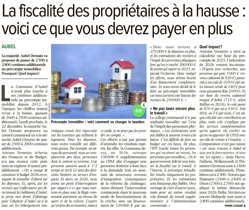 Aubel augmente les centimes additionnels