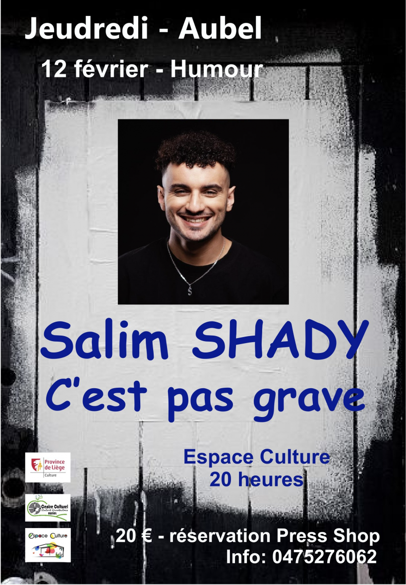 Originaire de Liège, Salim est un humoriste prometteur qui a commencé à se produire sur scène dès l'âge de 13 ans. Le jeudredi 12 février à 20 heures à l’Espace Culture, il vous présentera « Ce n’est pas grave » .