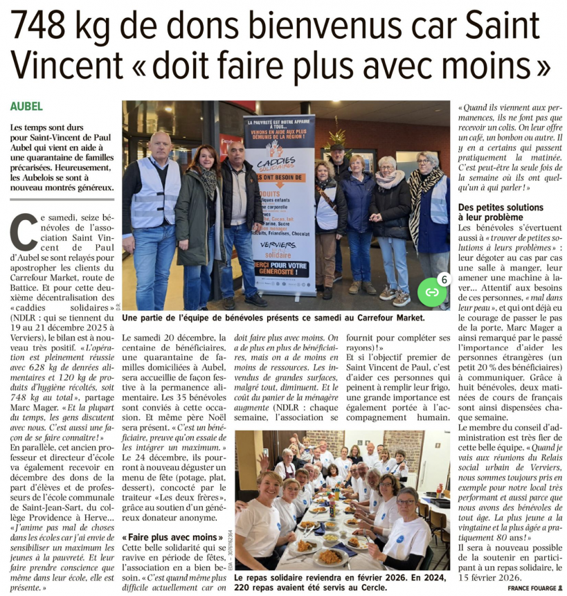 Une page de FRANCE FOUARGE dans L'AVENIR - LE JOUR VERVIERS du 17 décembre 2025.