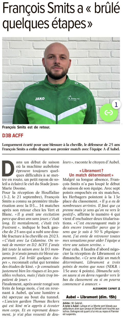 Un article d'ALEXANDRE CAPART dans L'AVENIR - LE JOUR VERVIERS du 4 octobre 2025.
