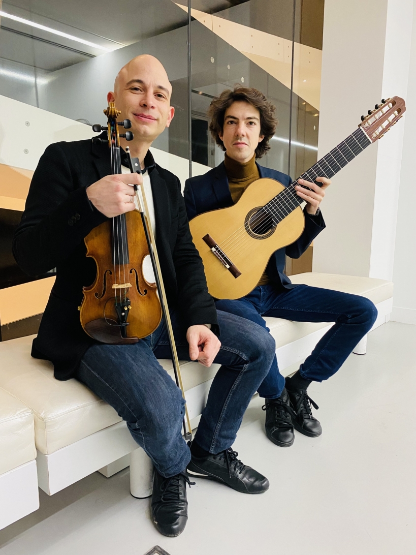 Le violon manouche d'Alexandre CAVALIERE et la guitare au phrasé classique d'Adrien BROGNA se conjuguent avec talent, finesse et bonheur.