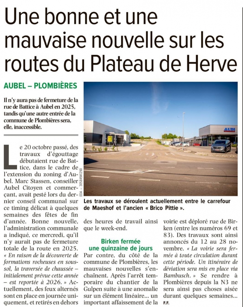 Une information de F.F. dans L’AVENIR - LE JOUR VERVIERS du 6 novembre 2025.