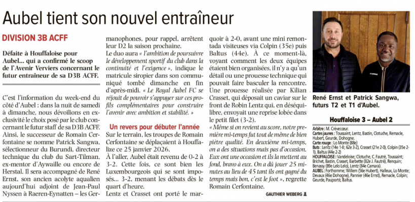 Un article de GAUTHIER WEBERG dans L'AVENIR - LE JOUR VERVIERS du26 janvier 2026.