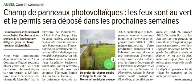 Un article de PIERRE LEJEUNE dans L'AVENIR - LE JOUR VERVIERS du 28 janvier 2026.