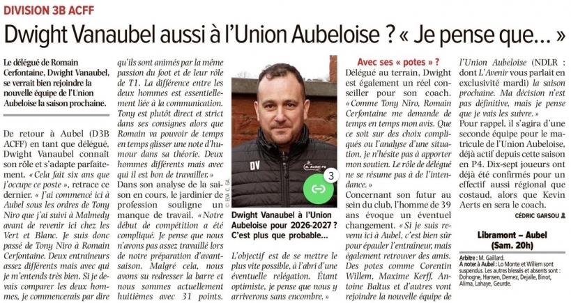 Un article de CÉDRIC GARSOU dans L’AVENIR - LE JOUR VERVIERS du 7 février 2026