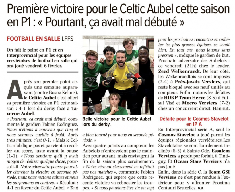Une information de G.B. dans L'AVENIR - LE JOUR VERVIERS du 13 février 2026.