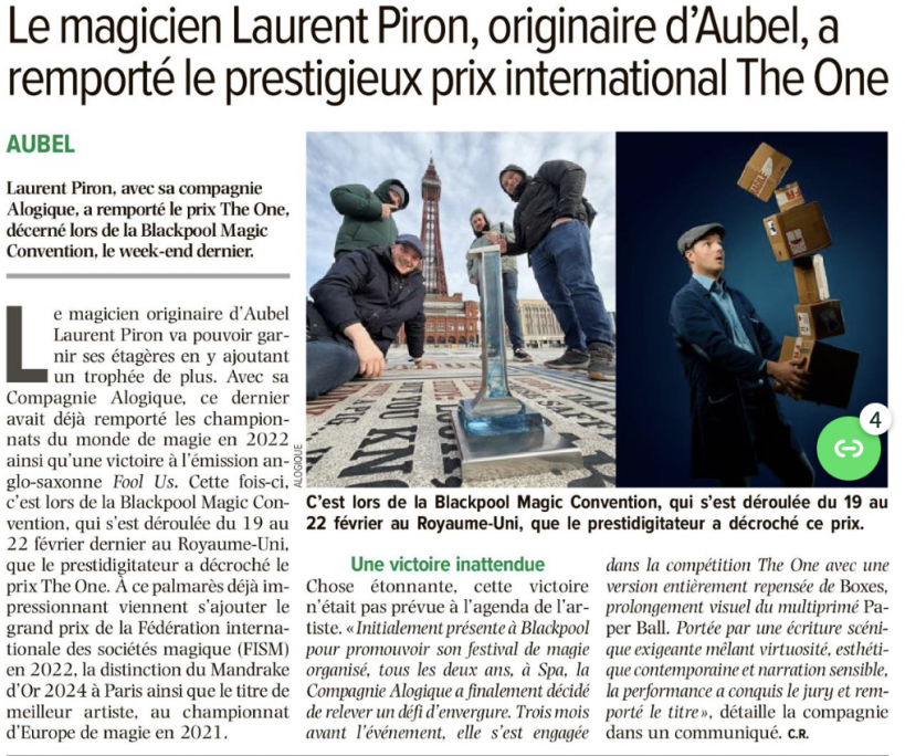 Un article de C.R. dans L'AVENIR - LE JOUR VERVIERS du 24 février 2026.