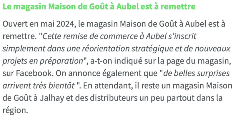 15h23 07 mars 2026 Commerce à remettre Tweet Une information de L'AVENIR - LE JOUR VERVIERS du 7 mars 2026. Lien permanent Catégories : Commerce 0 commentaire