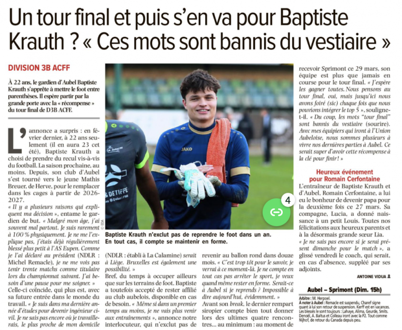 Un article d'ANTOINE VIDUA dans L'AVENIR - LE JOUR VERVIERS du 28 mars 2026