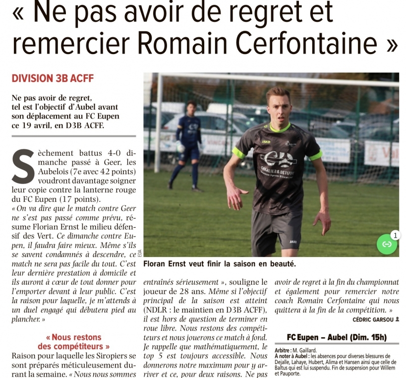 Un article de CÉDRIC GARSOU dans L’AVENIR - LE JOUR VERVIERS du 18 avril 2026