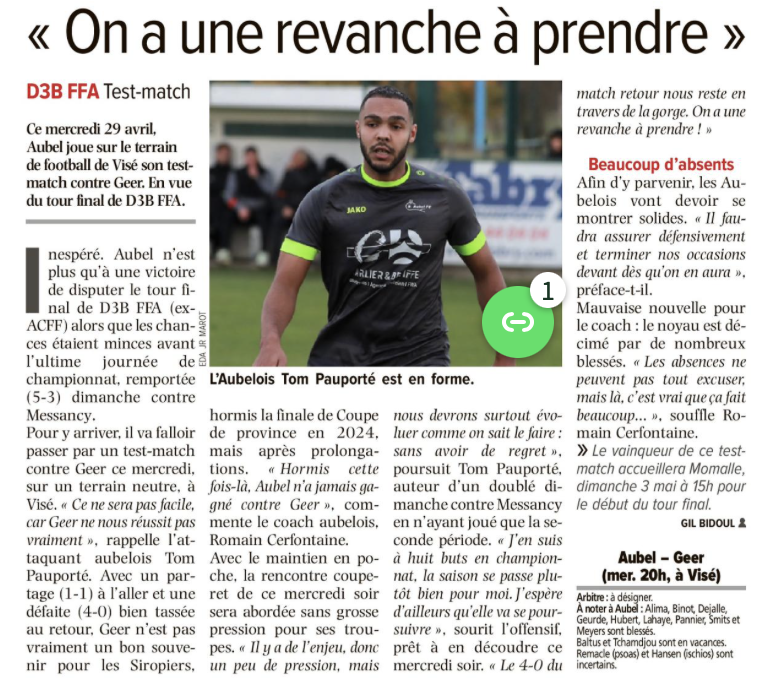 Un article de GIL BIDOUL dans L'AVENIR - LE JOUR VERVIERS du 29 avril 2026.